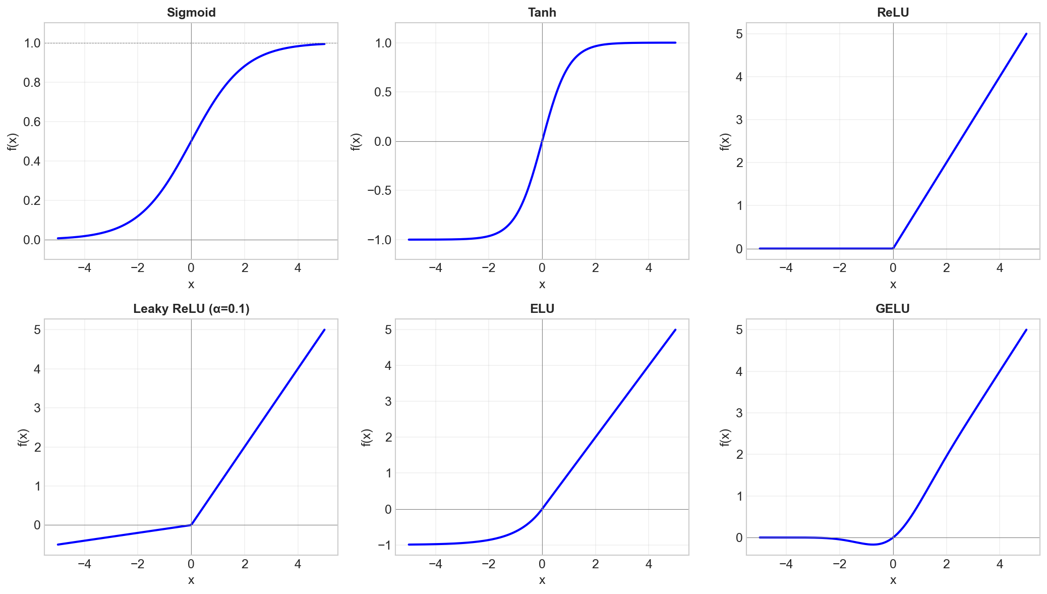 - Modern activations (GELU, Swish) are smooth variants of ReLU